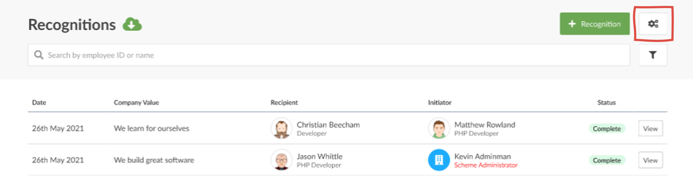 Please note: Administrators with ‘Analysis’ access now have access to the recognition tab and can download recognition details. Their access is view and download only, meaning they cannot give recognition on behalf of the company or manage any recognition already issued.